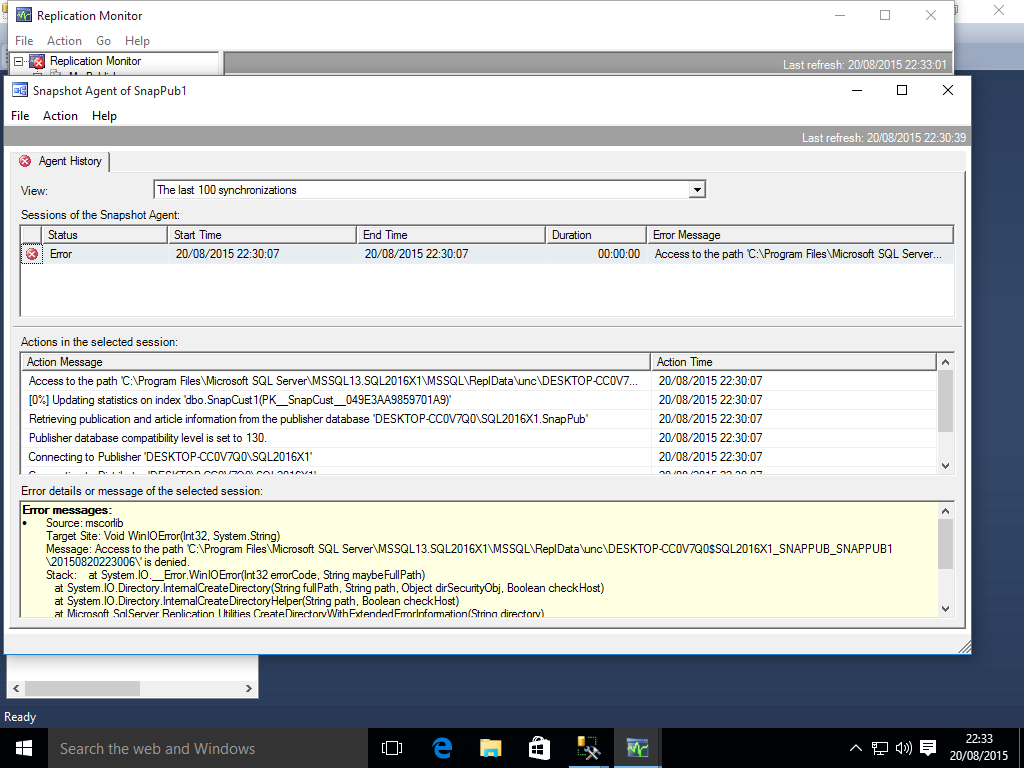 It is the repldata part of the path which is the first part of the path where our SQL Server Administrator does not have access