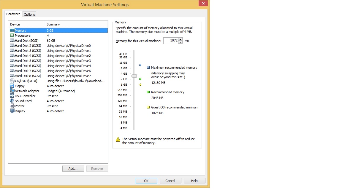 We then see the disk in disk manager within the VM and add a spanned volume of 528GB as the E: drive