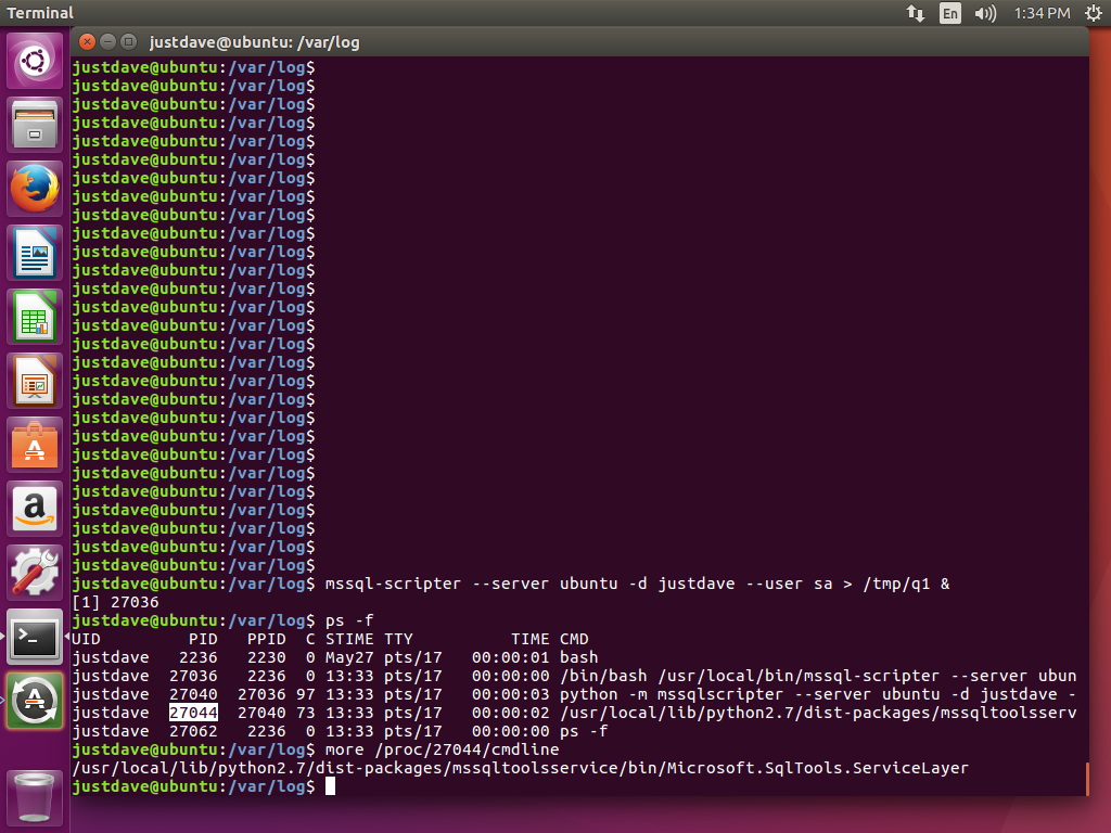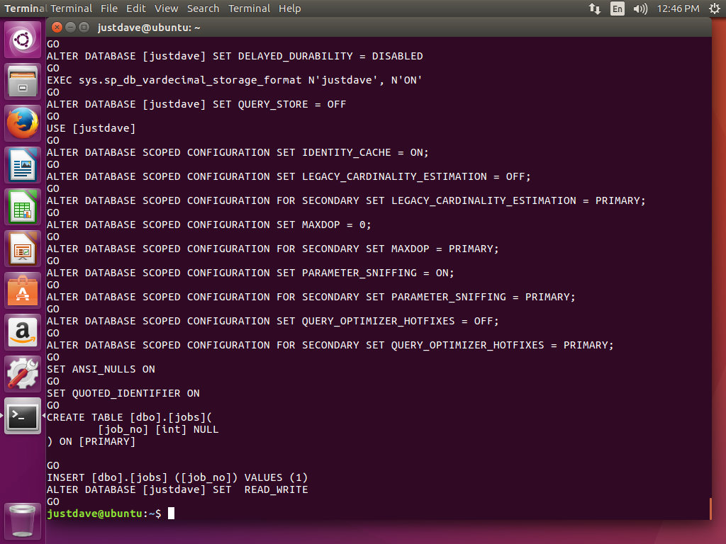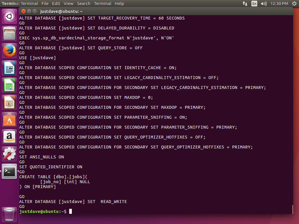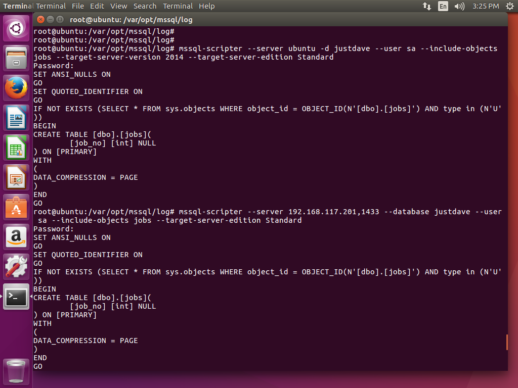 mssql-scripter --server ubuntu -d justdave --user sa --schema-and-data