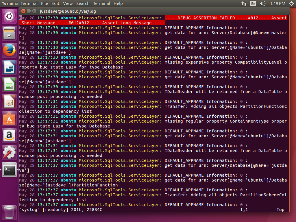 ISSUE: If we script the whole database we get an assert failed message in /var/log/syslog!