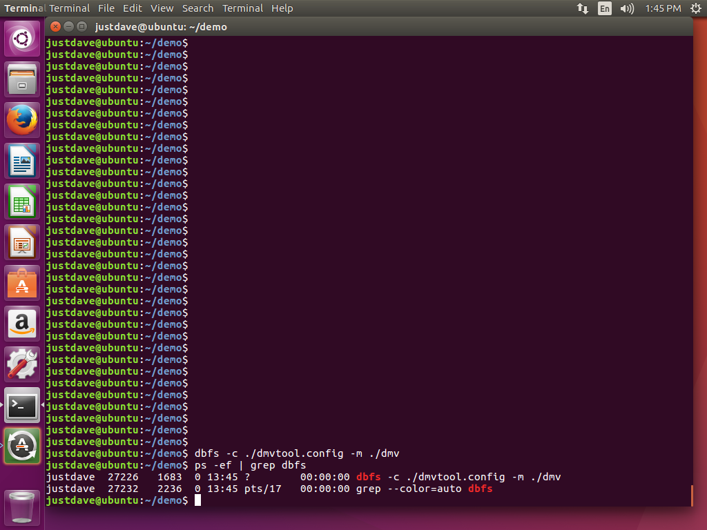 mkdir dmv dbfs -c ./dmvtool.config -m ./dmv
