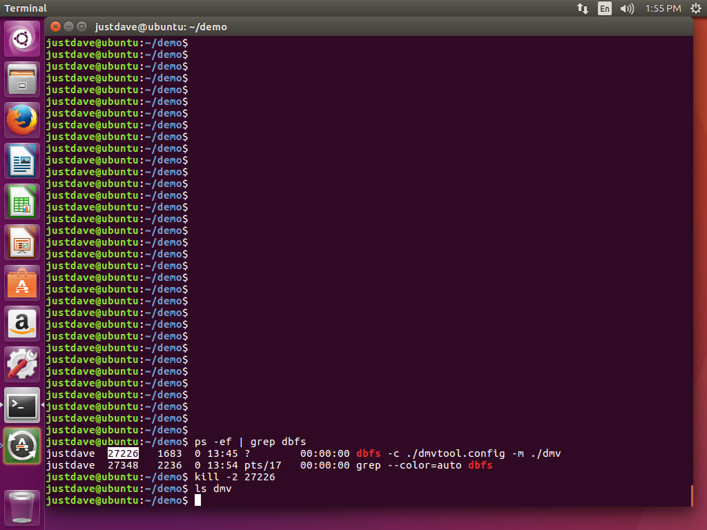 To stop the dbfs tool we kill it with -2 (Interrupt)!