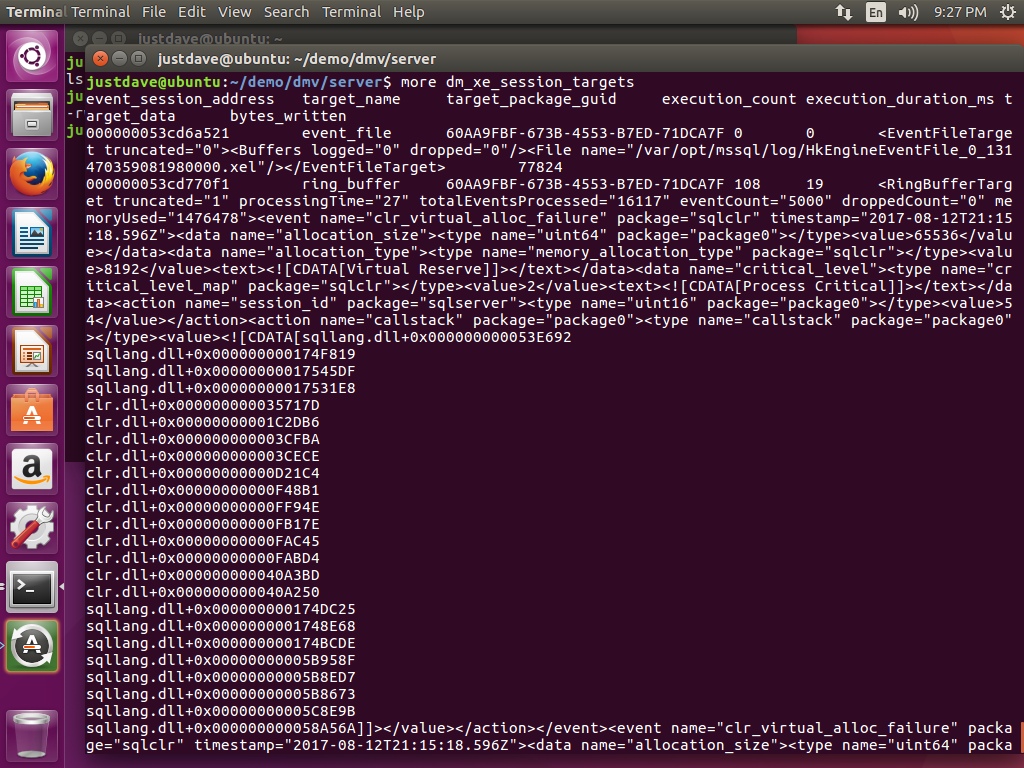 SQL Server 2017 the issue with DMV's dm_xe_session_targets and dm_xe_session_targets.json not been supported has been fixed